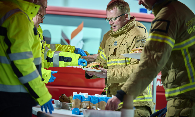 Frivillige hænder hos Service og Beredskab står bl.a. for mad og drikke til brandfolkene, hvis der er brande, der strækker sig over længere perioder. Foto: Service og Beredskab.